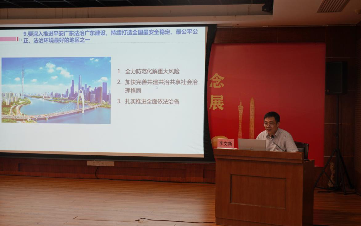 市委宣讲团成员、市政府研究室副主任李文新同志以《焕发老城市新活力 奋力走在全国前列》为主题作辅导报告,全面回顾了广东省过去五年的成就经验,并以深化实施省委“1+1+9”工作部署为切入点,介绍了广东省未来五年的谋划展望,详细解读了省党代会精神。报告主题鲜明、内容丰富、脉络清晰,极具思想性和指导性,帮助党员干部进一步学深悟透、融会贯通。