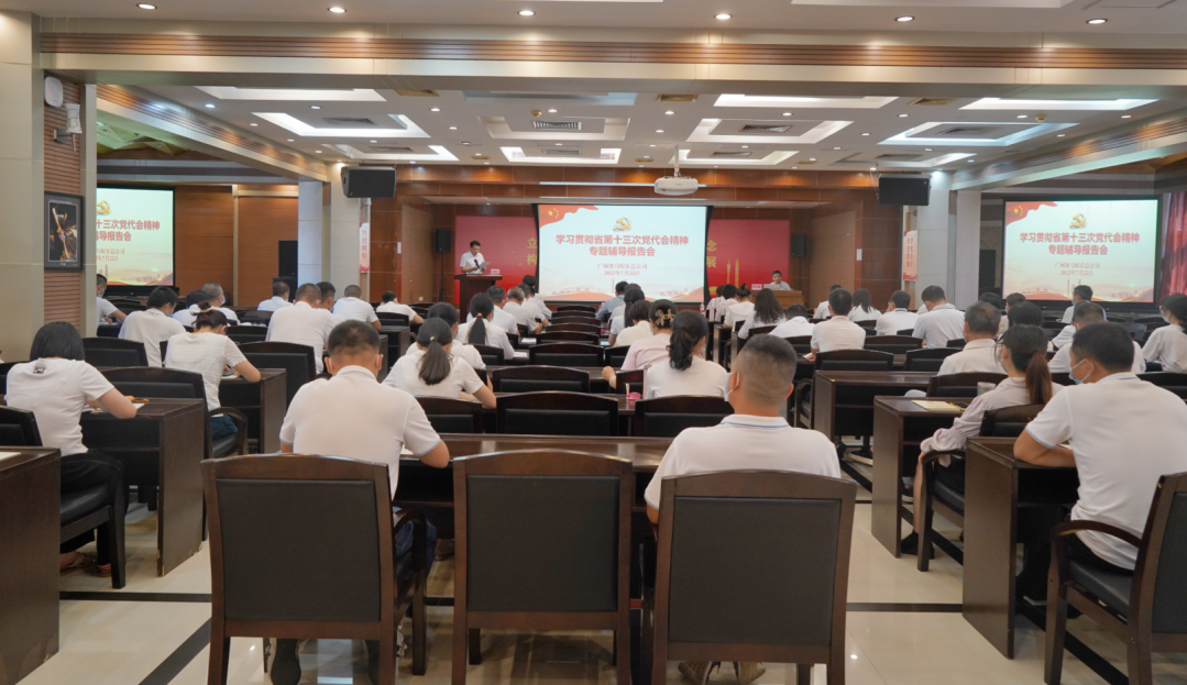 近日,为深入学习贯彻省第十三次党代会精神,进一步推动党史学习教育常态化长效化,广州金控集团下属广州赛马娱乐总公司党委在七楼大会议室召开学习贯彻省第十三次党代会精神专题辅导报告会。总公司全体党员干部、入党积极分子、管理人员以及红联共建单位党员代表共80余人参加了会议。