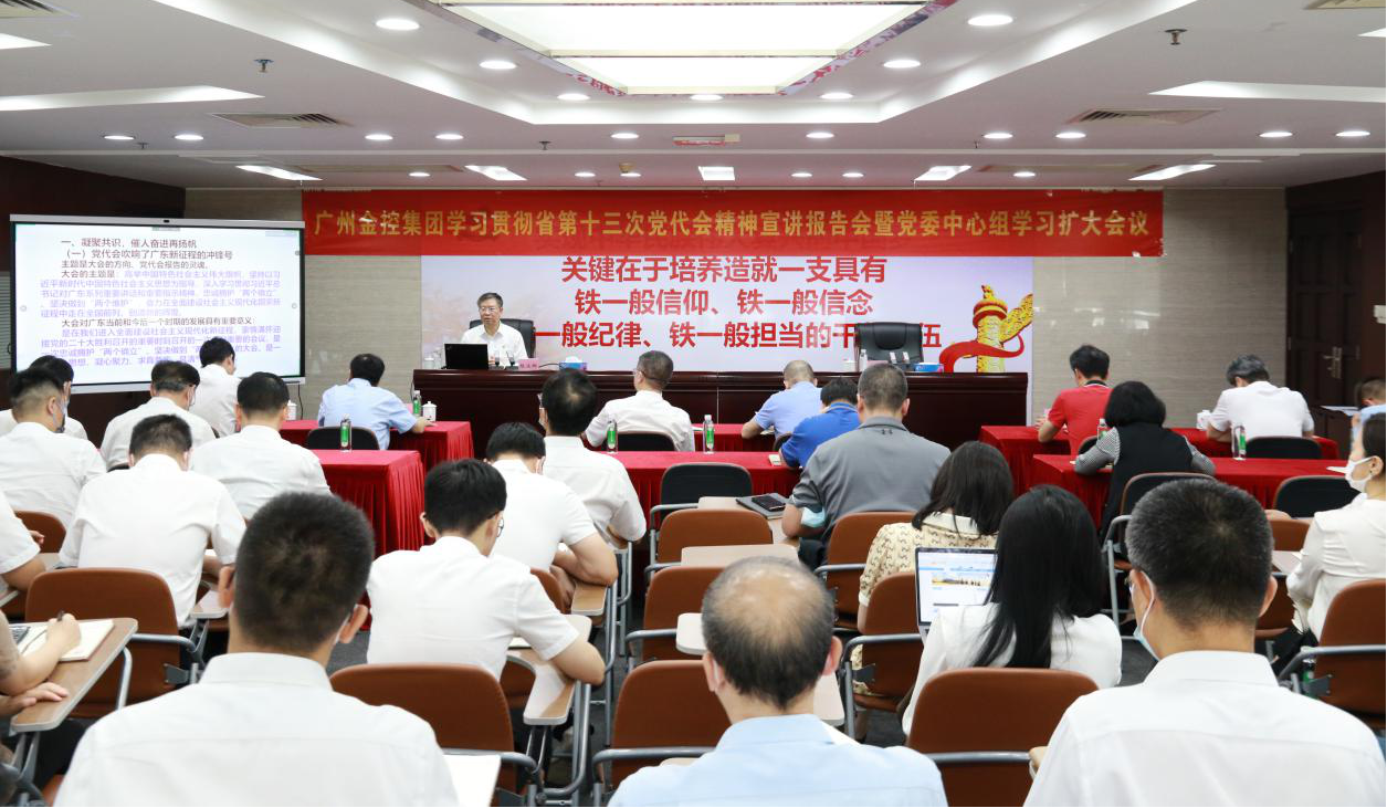7月27日上午,广州金控集团召开学习贯彻省第十三次党代会精神宣讲报告会暨党委中心组学习扩大会议,邀请省委宣讲团成员、广东省人民政府参事室(文史研究馆)党组书记、主任杨汉卿作专题宣讲报告。集团领导班子成员、派驻集团纪检监察组有关同志,集团本部各部门中层干部和下属企业领导班子成员共92人在集团主会场参会,集团下属企业全体干部职工近千人在各单位分会场通过视频会议形式参加宣讲学习。