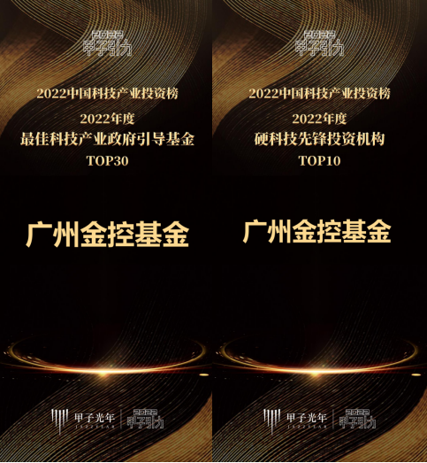 12月8日,甲子光年2022中国科技产业投资榜隆重揭晓,广州金控基金凭借在科技创新产业投资和母基金管理运营的卓越表现,荣获“2022年度最佳科技产业政府引导基金TOP30”“2022年度硬科技先锋投资机构TOP10”两项大奖。