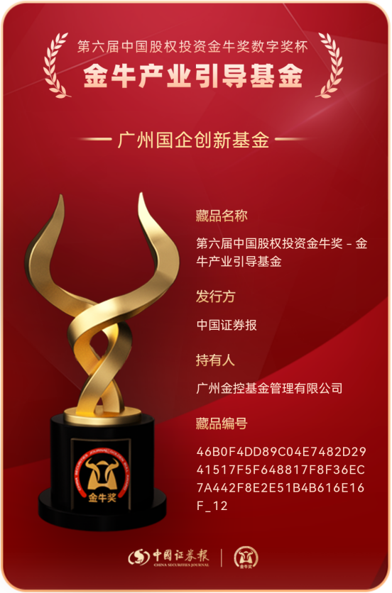 12月20日,由中国证券报主办的“2022中国股权投资论坛暨第六届中国股权投资金牛奖”评选揭晓,广州金控基金管理有限公司荣膺“金牛私募股权投资卓越机构奖”,广州国企创新基金荣膺“金牛产业引导基金奖”。