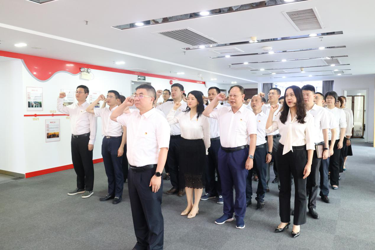 在党的生日这个光辉的日子里,由集团党委副书记马智彬同志领誓,参加活动的全体党员同志们面向党旗高举右拳,重温了入党誓词,铿锵誓言传达出了身为共产党员的自豪感和使命感,表达了对党和人民的无限忠诚,充分展现了广州金控集团全体党员干部的责任与担当。