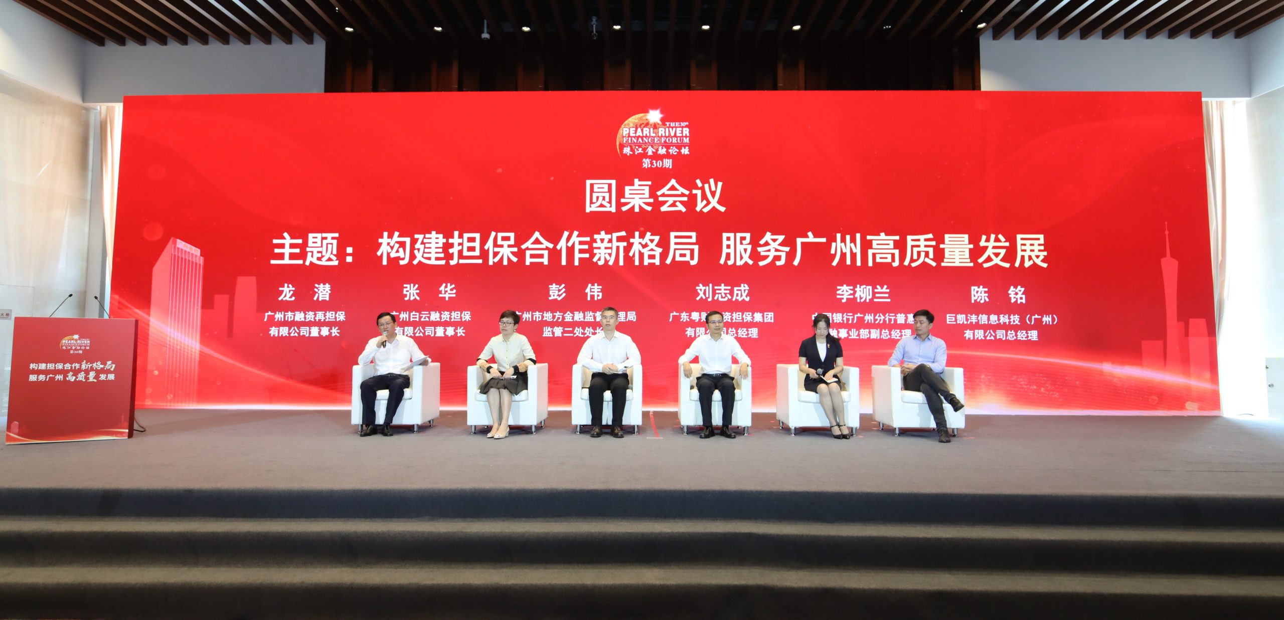 论坛圆桌会议环节由广州市融资再担保有限公司董事长龙潜主持。市地方9999js金沙老品牌监督管理局、粤财担保集团、中国银行广州分行、白云担保、巨凯沣信息科技(广州)等嘉宾围绕“构建担保合作新格局、服务广州经济高质量发展”主题进行分享交流,共同探讨政府性融资担保与实体经济共生共荣的发展问题,推动打造各方参与的政府性担保发展新格局。