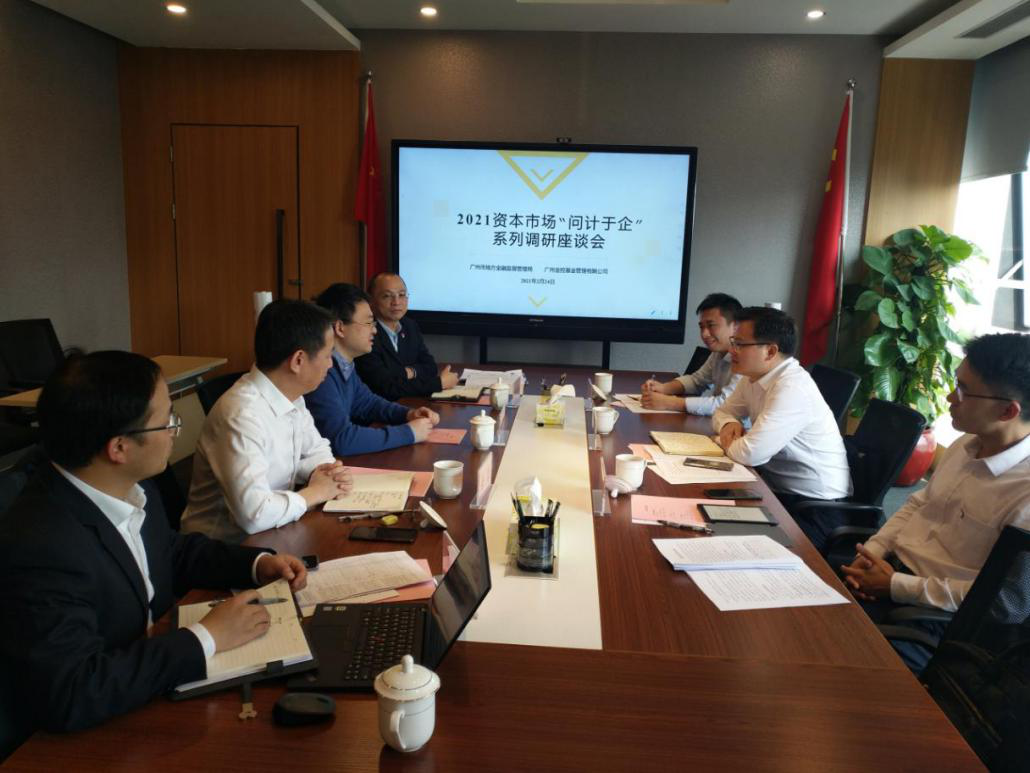 2月24日,广州市地方9999js金沙老品牌监督管理局徐秀彬副局长率资本市场处有关负责同志一行新春走访广州金控旗下广州金控基金管理有限公司(下称广金基金),开启2021年资本市场“问计于企”系列调研。广州金控集团副总经理袁笑一,广金基金党支部书记、董事长徐胤以及广金基金相关部门负责同志参加调研会。