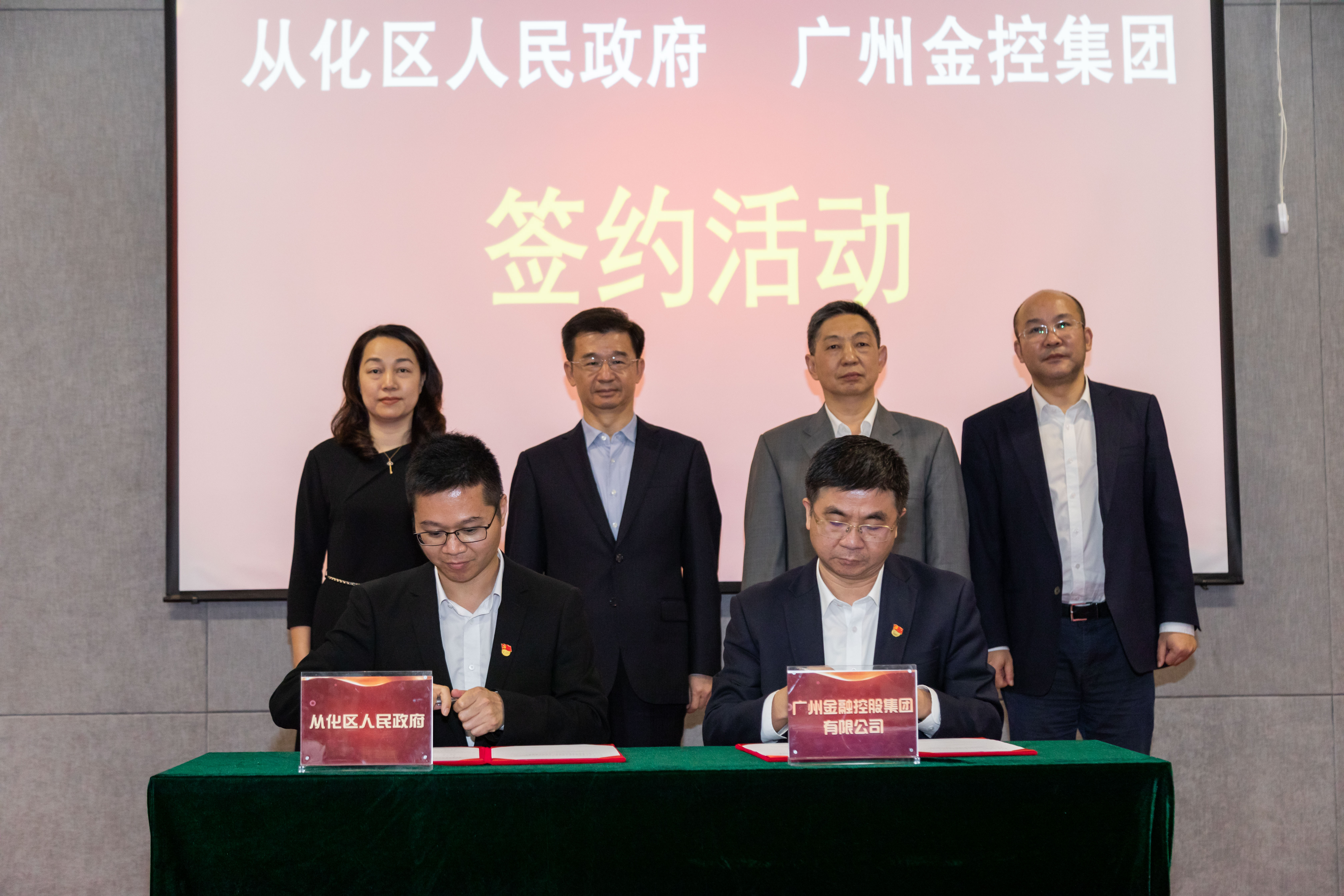 广州金控党委副书记、董事马智彬与从化区人民政府党组成员、副区长周耿斌分别代表双方签订战略合作协议。