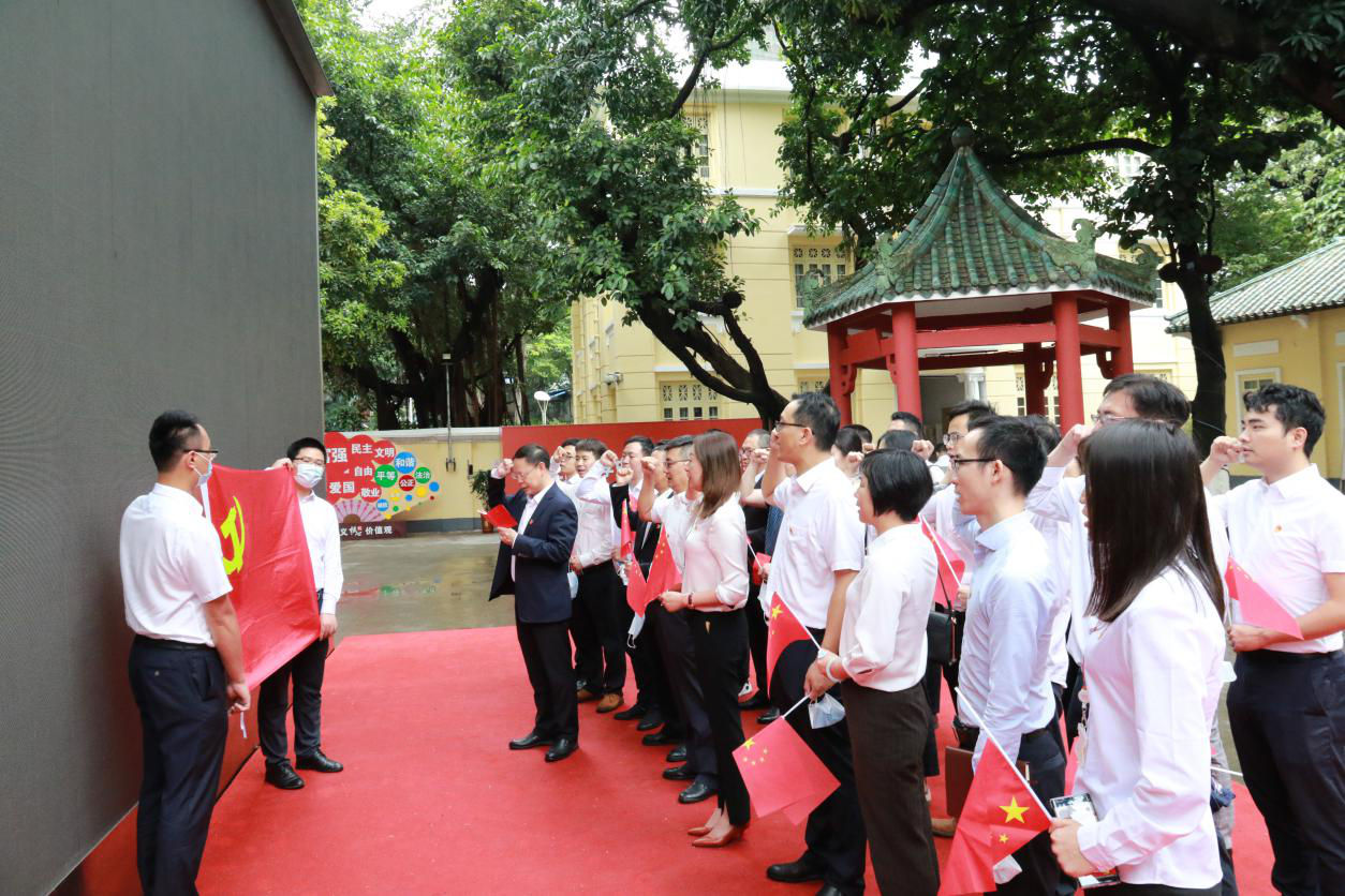 随后,全体党员在广州金控领誓同志的带领下重温入党誓词。党员们排着整齐的队伍,面对鲜红的党旗庄严宣誓:“我志愿加入中国共产党,拥护党的纲领……随时准备为党和人民牺牲一切,永不叛党。”铿锵有力的宣誓声在广州起义纪念馆大院中回荡,促使党员干部们铭记入党初心、牢记使命、勇于担当、积极作为。
