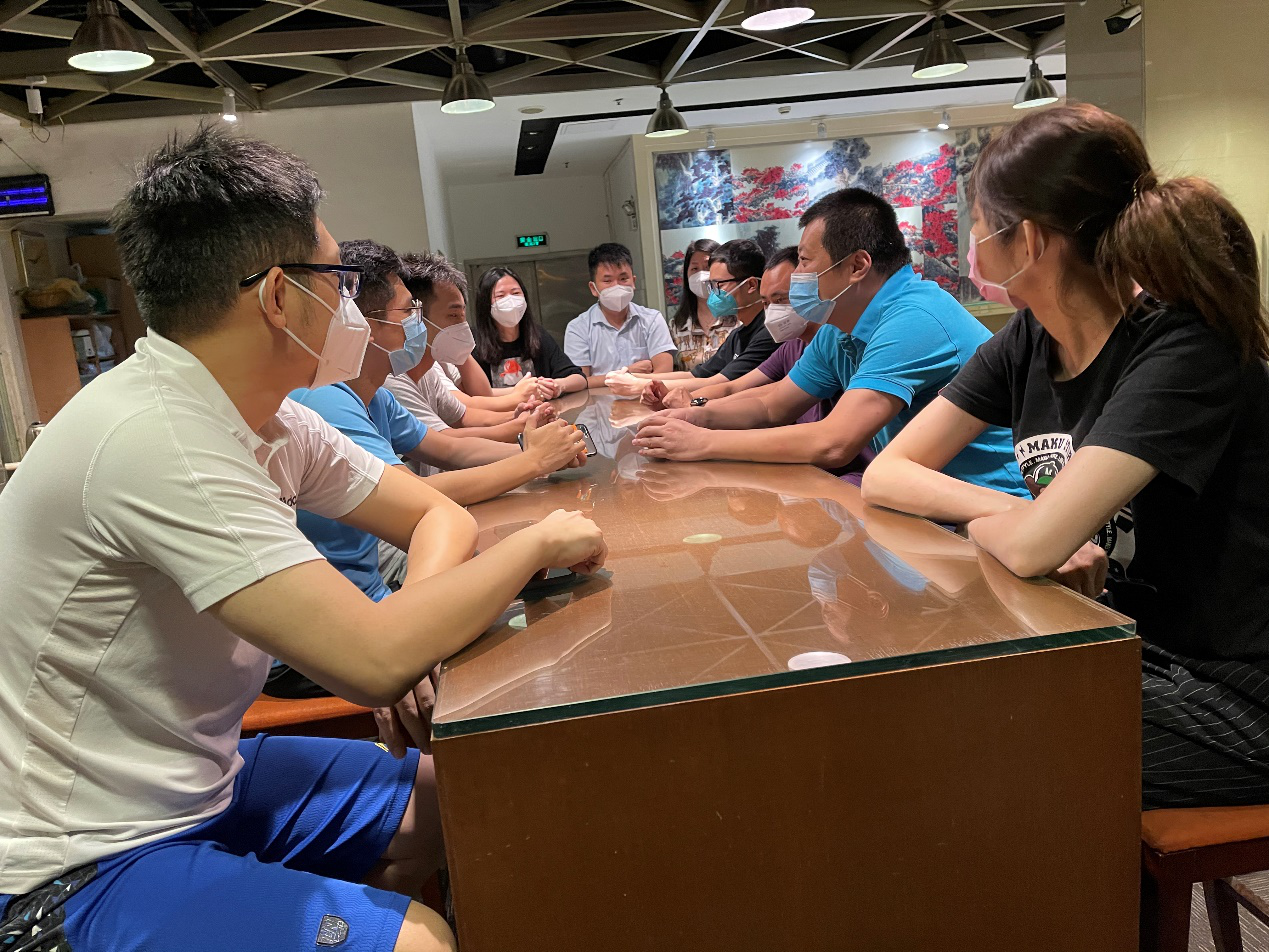 总结经验鼓干劲。“各位同志,我们现在开会总结今天的工作……”,晚上,广州金控“战疫先锋”队队长金志宏正开会总结这一天的抗疫服务工作,肯定队员们勇担当、不畏惧、不怕苦、不怕累的精神,提出分组轮岗工作机制,解决队员们在高温、高湿工作状态下持续连轴转的问题,及时纠正个别队员没有规范佩戴好防护面罩的行为等等。这支队伍从投入疫区战斗以来,即便工作再累,都坚持每天晚上集中开总结会议,及时总结经验做法,解决存在问题,为更好地完成明天的工作任务打下坚实基础。