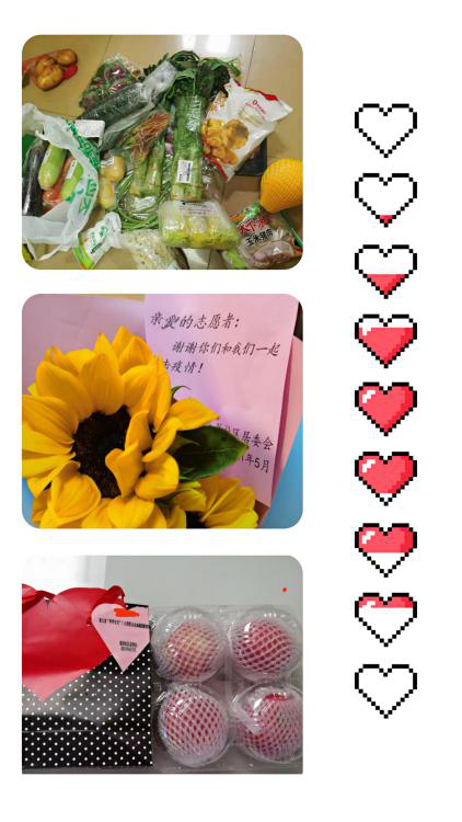 面对扑面而来的疫情,居委紧急统筹协调有关部门的安排,为居民派餐,基本保障居民的一日三餐,联系落实楼道消杀、听取志愿者的反馈,落实居民的各种合理诉求。协助医护人员上门做检测(居民居家隔离14天,一共做9次核酸检测)、每天上门测体温,为居民派三餐食材上门,专人收垃圾,送快递上门……居委的温暖,还体现在一次次的细节安排上:第七次核酸检测后,给楼层志愿者送花,感谢志愿者们的无私奉献;六一儿童节,给孩子准备礼物,为孩子们送去一份惊喜的节日祝福;第十四天核酸检测后,为每家每户一袋苹果,祝福大家平平安安。居民足不出户也得到妥妥的照顾。