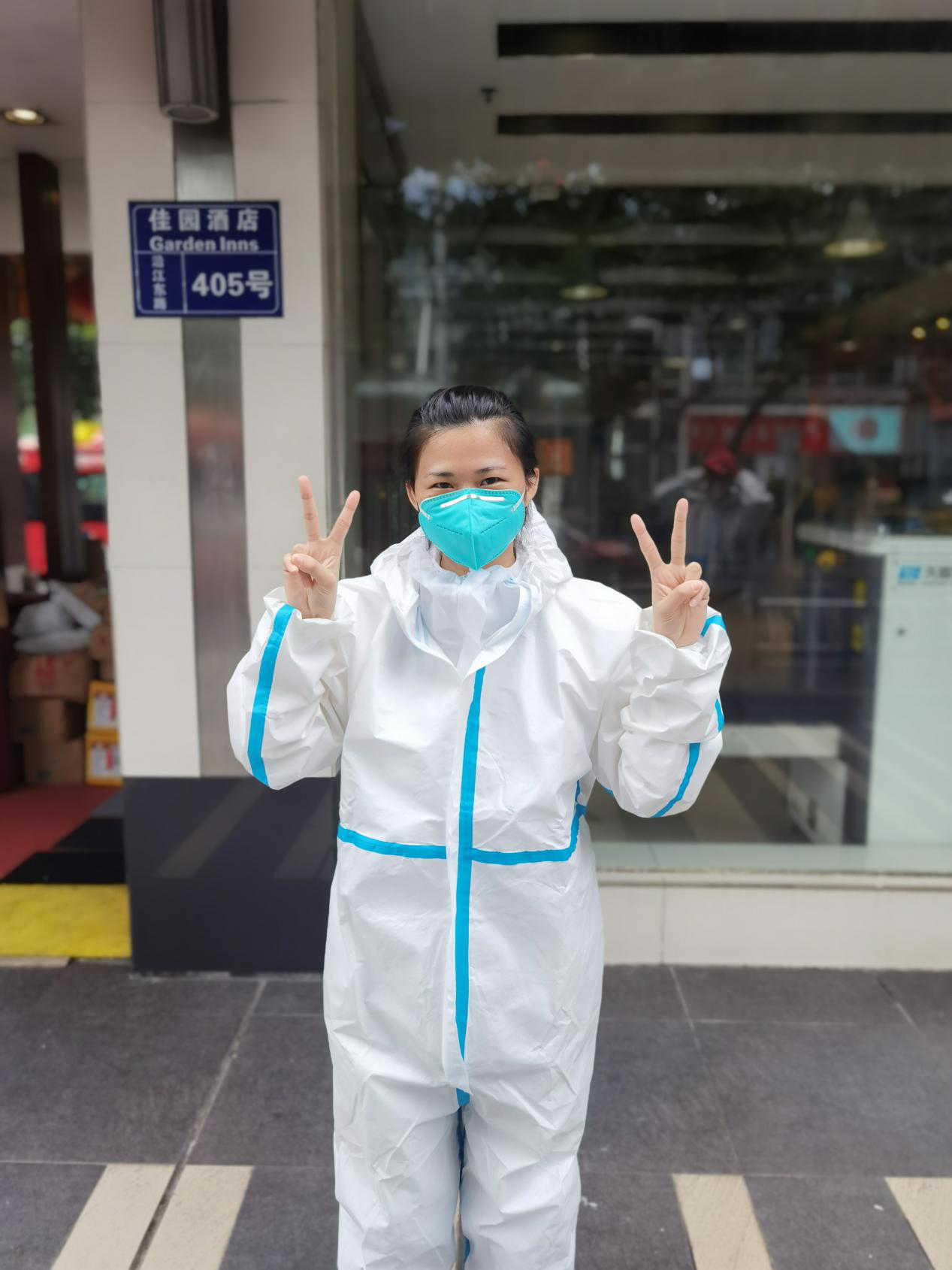 6月1日,她作为万联证券“战疫先锋”队伍中唯一的“女将”,火速驰援荔湾白鹤洞中海花湾壹号小区。由于形势紧急,从收到通知到正式出发,前后仅仅2个多小时时间。“我没想到这么急,生活用品都没备齐。但心里不慌,因为广州有抗击非典和上一轮新冠疫情的经验,有钟南山院士坐镇为我们加Buff,有两针疫苗护体,还有领导和公司做我们的坚强后盾,我不是一个人在战斗!”关键时刻,这个90后的潮汕姑娘急而不乱,她迅速调整状态并做好力所能及的准备,奔赴抗疫一线。
