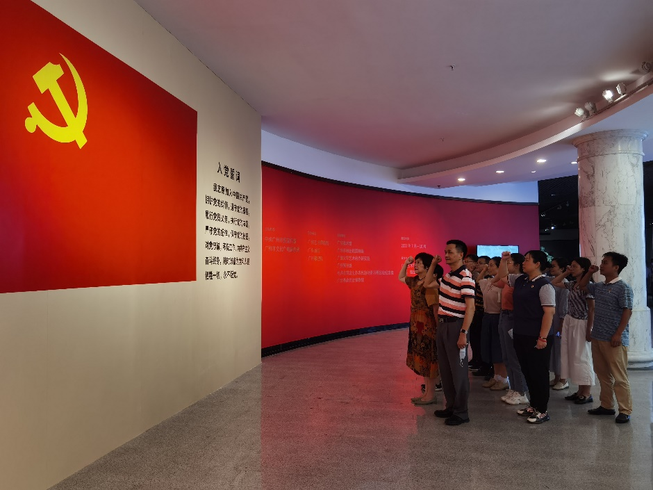 参观结束后,党员们心情激动、热情丝毫不减,在党支部副书记王小辉的带领下,全体党员在展览门口处重温入党誓词,面对鲜红党旗的展板举起右拳、庄严宣誓:“我志愿加入中国共产党,拥护党的纲领……随时准备为党和人民牺牲一切,永不叛党。”重温入党誓词,这是不忘初心使命的再宣示,也是砥砺奋斗前行的再出发。
