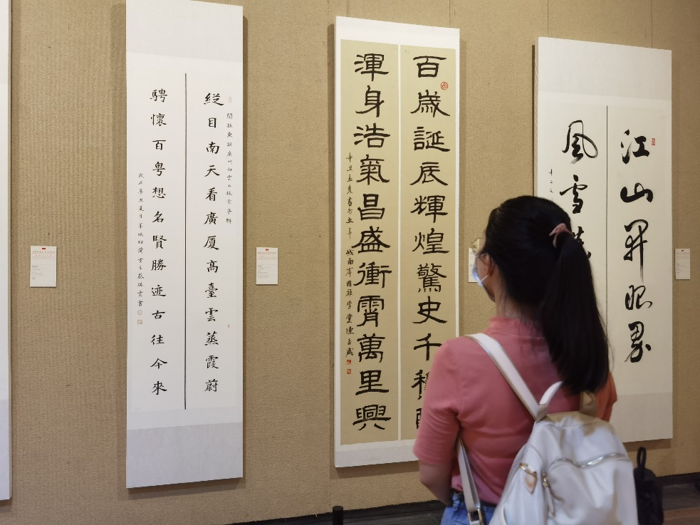 “广州市庆祝中国共产党成立100周年楹联书法展” 以庆祝建党100周年为主旨,以“百联歌伟业,翰墨颂党恩”为题,特邀100名书法家以笔墨为媒、以党史为声,书写100幅楹联书法作品。百幅妙楹佳联笔法传神,汇聚了极富岭南特色的中华传统文化,记载了“千年商埠”的历史记忆和千年文脉,展现了广州书法艺术家新时代勇立潮头的良好风貌,表达了对党、对祖国的深深感恩和美好祝愿。