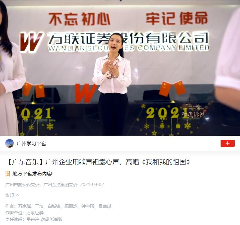 党史学习教育进入第二阶段以来,广州金控集团下属万联证券党委把深入学习贯彻习近平总书记“七一”重要讲话精神作为核心内容,立足公司经营发展实践和党建工作实际,进一步丰富拓展党史学习教育内涵,坚持在内容上突出重点、在形式上创新载体、在方法上联系实际,形成了“专题化研学、项目化管理、常态化指导、特色化载体、品牌化服务”以及“建强党组织号召快速响应机制”于一体的“五化一快”模式,有力有效推动党史学习教育持续往深里走、往实里走。