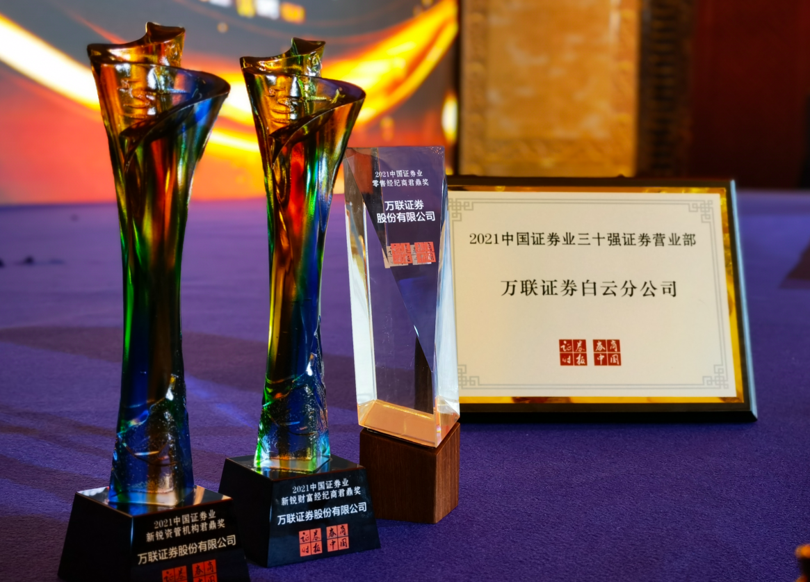10月28日,由证券时报主办的“中国企业ESG发展研讨会暨2021中国证券公司年会”在深圳举行,会上颁发了“2021中国证券业君鼎奖”各大奖项。经过激烈的角逐,广州金控集团下属万联证券凭借优秀的财富管理、资产管理能力,一举斩获“2021中国证券业新锐财富经纪商君鼎奖”“2021中国证券业新锐资管机构君鼎奖”和“2021中国证券业零售经纪商君鼎奖”三项大奖,下辖白云分公司斩获“中国证券业三十强证券营业部君鼎奖”。