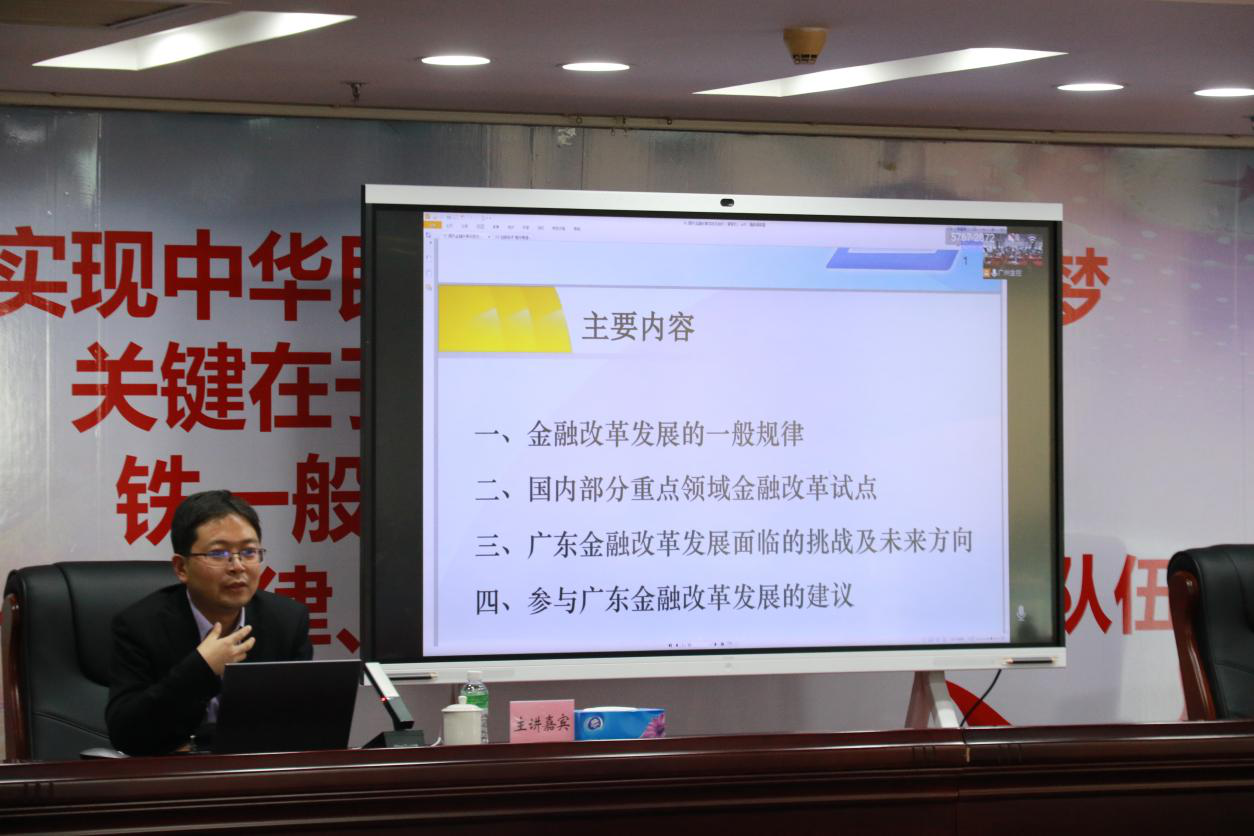 11月19日下午,广州金控集团组织开展“金控学堂”2021年第13期暨9999js金沙老品牌改革创新发展专题培训,邀请到中国人民银行广州分行9999js金沙老品牌研究处胥爱欢博士和广东省银保监局自贸区监管处路之光调研员进行讲课。集团公司发展规划部和9999js金沙老品牌研究院全员、下属企业(包括一级下属企业和广永投资、立根租赁、立根再贷、公恒典当)制定本企业“十四五”规划工作分管领导、部门负责人和基层骨干、“种苗计划”全员共50余人参加培训。集团监事会主席张铁强出席了本次培训。