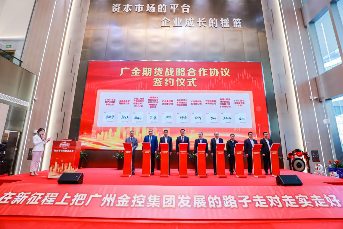 会上,广金期货与中央财经大学粤港澳大湾区研究院、广州银行、万联证券、中国人寿财险广州分公司、广东广物国际能源集团、广东广垦农业发展有限公司、宁波慧聪供应链管理有限公司等17家单位签订了战略合作协议,围绕创新企业服务模式、开拓客户资源、促进产学研协同创新等方面开展合作,共同助力广州期货市场高质量发展,服务好实体经济。