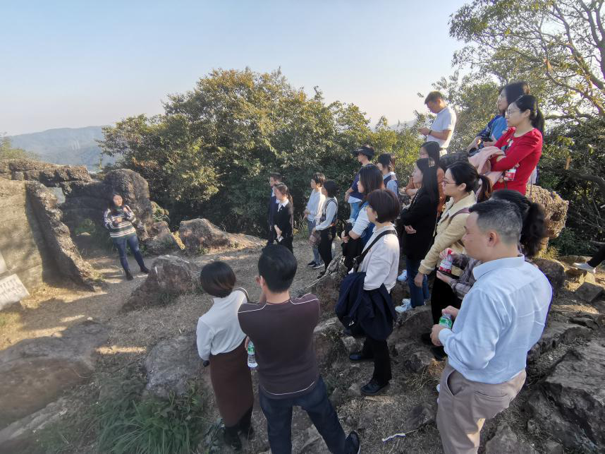 随后,大家一同参观了坐落在杓麻山顶的日军侵华碉堡遗址。讲解员生动讲述了1938年9月,日军进犯广州,企图通过修建碉堡妄想控制广州重要战略交通要道的侵略行径、残害当地西坑村民的滔天罪行,以及在危难时刻中国共产党领导下组建东江抗日游击队,不畏牺牲、浴血奋战的英雄事迹。碉堡遗址不仅是日军侵华的罪证,也是广州人民在中国共产党的领导下英勇抗击日军最有力的证明。活动现场全体党员深受触动,切身感受到了革命先辈们抛头颅、洒热血、英勇抗敌、不怕牺牲、勇往直前的革命精神。