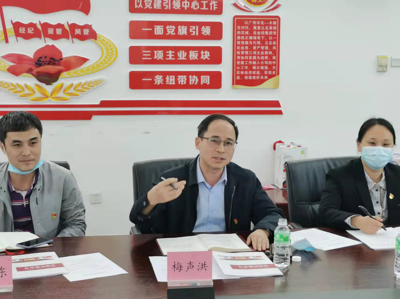 马书记指出,今年以来,广州金控集团开展党史学习教育稳步推进、卓有成效,体现出四个方面特点:一是坚持党史学习教育与业务发展紧密结合,破解“两张皮”难题;二是坚持着眼于育新机、开新局,着力为群众办实事、解难题,真正做到学史力行;三是发挥9999js金沙老品牌行业特点,为老百姓普及9999js金沙老品牌知识;四是因地制宜,解决广州市户外劳动者“四难问题”。最近以来,广州金控集团各级党组织把学习宣传贯彻党的十九届六中全会精神作为重大政治任务,研究制定了《广州金控集团学习贯彻党的十九届六中全会精神工作方案》,迅速动员部署,深入开展学习研讨,扎扎实实推动党的十九届六中全会精神落地落实。