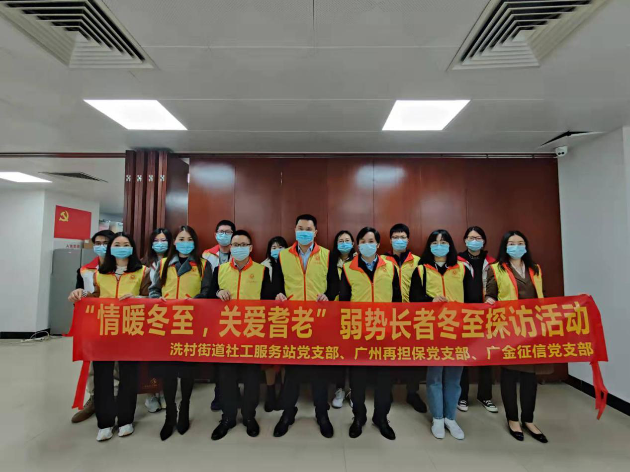 12月20日,广州金控集团下属广州再担保党支部、广金征信党支部联合冼村街道社工服务站党支部开展“情暖冬至,关爱耆老”弱势长者冬至探访活动,组织10名党员深入冼村街辖区内8个小区,为20名独居孤寡、高龄、居家养病长者送上关怀以及慰问物品,使老人在寒冬中感受到温情和温暖。