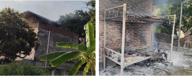 2月24日下午3点,俱乐部保安队长侯继林在巡逻场地时发现俱乐部果农宿舍方向冒出大量浓烟,出于职业的敏感性,他断定是那里着火了,第一时间联系当值的巡逻队员李木清,两人快速跑去浓烟方向查看情况。原来浓烟是从俱乐部围墙外的何屋村村民房屋内飘出,两人隔着围墙朝屋内多次大声呼喊,始终没人回应,灭火救灾分秒不能耽误。侯继林一边安排人员拨打119报警,一边与李木清迅速带着灭火器赶赴火场。到达着火房屋楼下,侯继林以最快速度冲到楼上着火点,迅速展开灭火行动。经过几分钟的紧张扑救,终于扑灭了初起火源。由于发现及时,处理得当,火灾没有给业主和周边房屋造成更大损失,附近的村民纷纷为俱乐部安保人员这种临危不惧、英勇救火的事迹点赞。火源扑灭后,业主朱先生连声道谢:“真的特别感激两名同志及时发现并快速扑灭了初期火灾,为我们家乃至整村村民减少了巨大的经济损失。这里不是你们的管辖范围,在这样危险的情况下,你们不顾个人安危,英勇灭火,真为有这么好的邻居而高兴,衷心地感谢天麓马术俱乐部!”