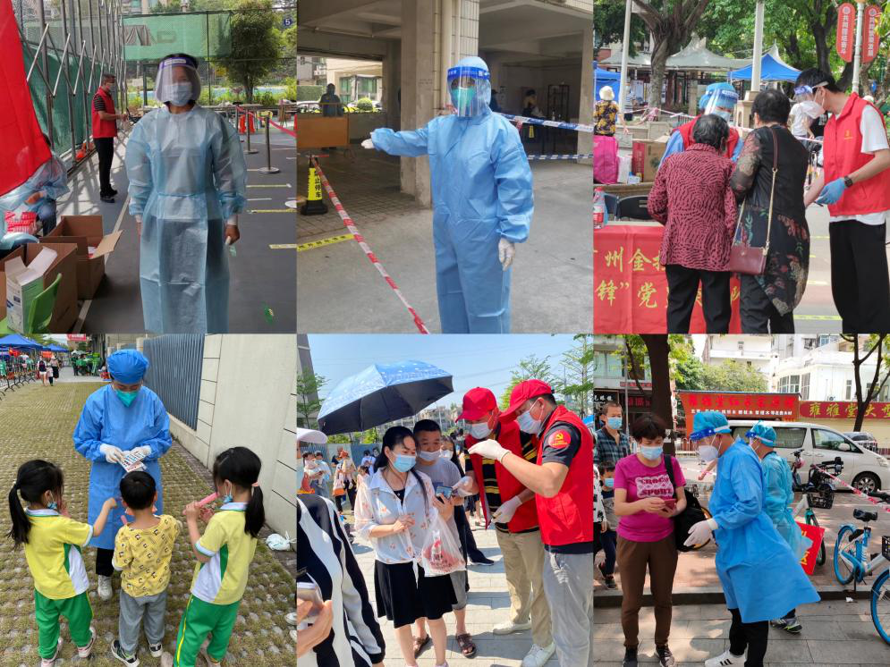 全市核酸工作时间紧、任务重。总公司党委迅速组织10多位党员干部紧急支援白云、海珠、天河等4区8个社区。连日来,志愿者在社区核酸检测点充分发挥先锋模范作用,从沐浴晨光、头顶烈日到披星戴月,他们负责扫码、核对身份信息、引导排队、维护秩序,与医务人员、社区工作者并肩作战,不断跑出速度与温度,生动诠释着“党旗飘在一线、堡垒筑在一线、党员冲在一线”,有力推动全员核酸检测顺利完成。