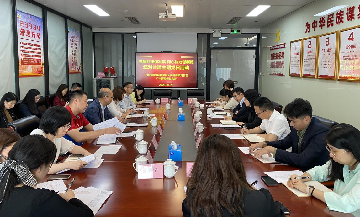 为持续深化落实“红联共建”工作机制,不断扩大党建“朋友圈”,把党建优势转化为发展优势,以高质量党建引领公司高质量发展,近日,广州金控集团旗下广州再担保党支部与国家税务总局广州市越秀区税务局人民税务所党支部(以下简称人民税务所党支部),在广州再担保会议室举办“党建共建促发展,同心协力谋新篇”主题党日活动暨党建促业务座谈会。广州市越秀区税务局党委委员、总经济师陈瑞仲,人民税务所党支部书记、所长郑健雄,广州再担保党支部委员、总经理姚慧以及双方党员代表共20人参加活动,双方签订结对共建协议。