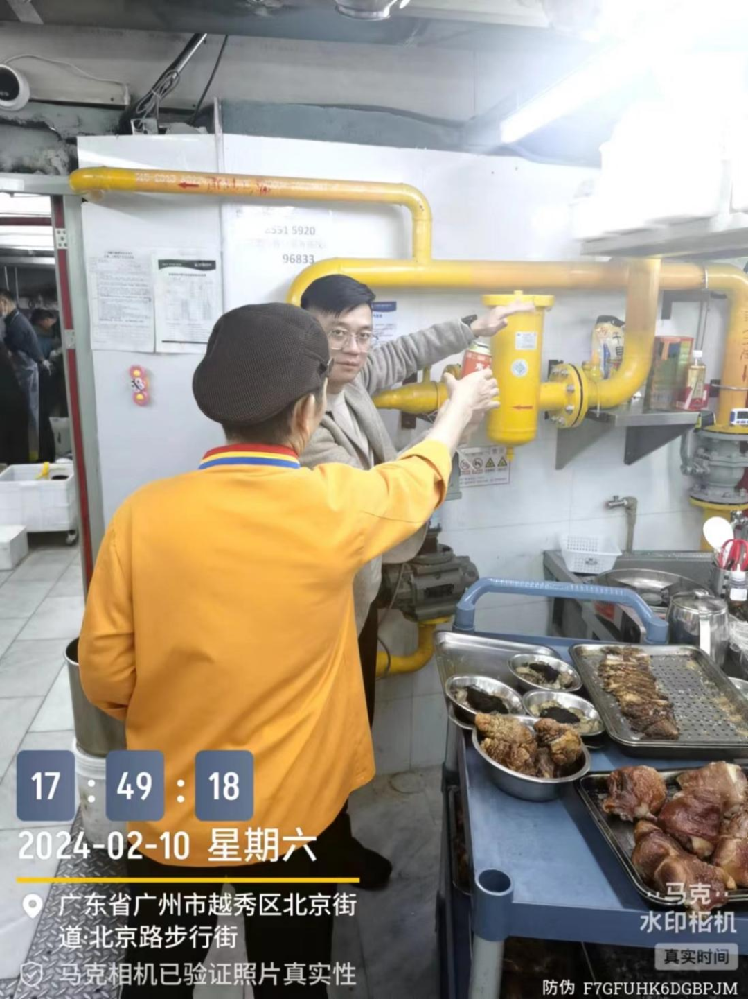 2月10日,年初一。物业管理部负责人陈炳基前往华宇大厦和广永丽都物业检查,假期最繁忙是各餐饮商家的厨房,陈炳基便到后厨检查,发现厨师随手将小罐气瓶放在煤气管道的阀门上,陈炳基立即要求厨房人员拿开小罐气瓶,并叮嘱“无论多忙,永远不要忘记安全第一的原则”,否则可能因为一时便利酿成大祸。广永丽都物业部分停工工地虽然已完成清场,但陈炳基仍不放心,再次进入工地,对临时电源是否关闭、通道是否畅通、是否有闲杂人员等情况进行细致检查。陈炳基要求各项目经理,安全检查不能走过场,要善于找问题,要根据物业不同特点抓住关键问题,并对隐患问题提出整改方案,安全检查才有意义,项目经理不但要提高自己的专业能力,也要提升发现和解决问题的能力。