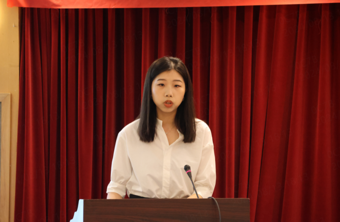 “在座大多数同学都毕业国内外知名高校,有良好的教育背景,不少拥有良好中英文背景,近朱者赤,跟优秀的人在一起会让自己变得更优秀。我非常荣幸能够在金控这个平台结识这么多优秀的新同事。”