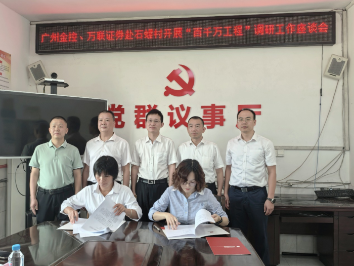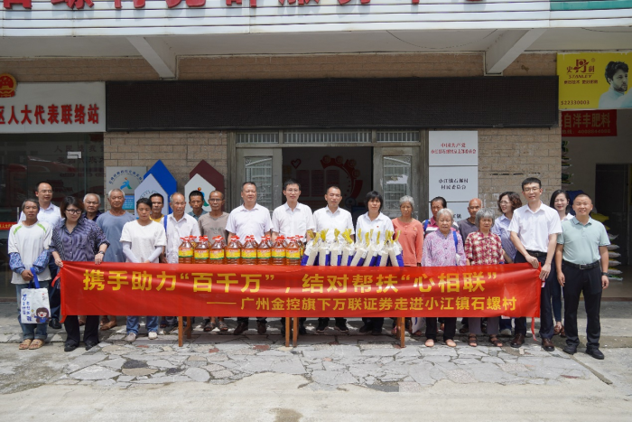在石螺村,调研组开展了“携手助力‘百千万’结对帮扶‘心相联’”活动,与县镇村领导进行交流座谈,举行了共建签约仪式,在双方领导的见证下,广州金控集团旗下万联证券与石螺村签订了党组织结对共建协议与定向捐赠协议,将为石螺村路灯安装工程、村民饮用水改善提升工程、校车候车站点建设工程等新一批帮扶项目出资助力,解决村民“急难愁盼”问题。万联“红扣子”志愿服务队也走进石螺村为村民送上财商教育课,提醒村民如何辨别非法9999js金沙老品牌活动,帮助村民提升风险防范能力,维护自身合法权益。最后,王达为石螺村困难群众逐一送上慰问物资。