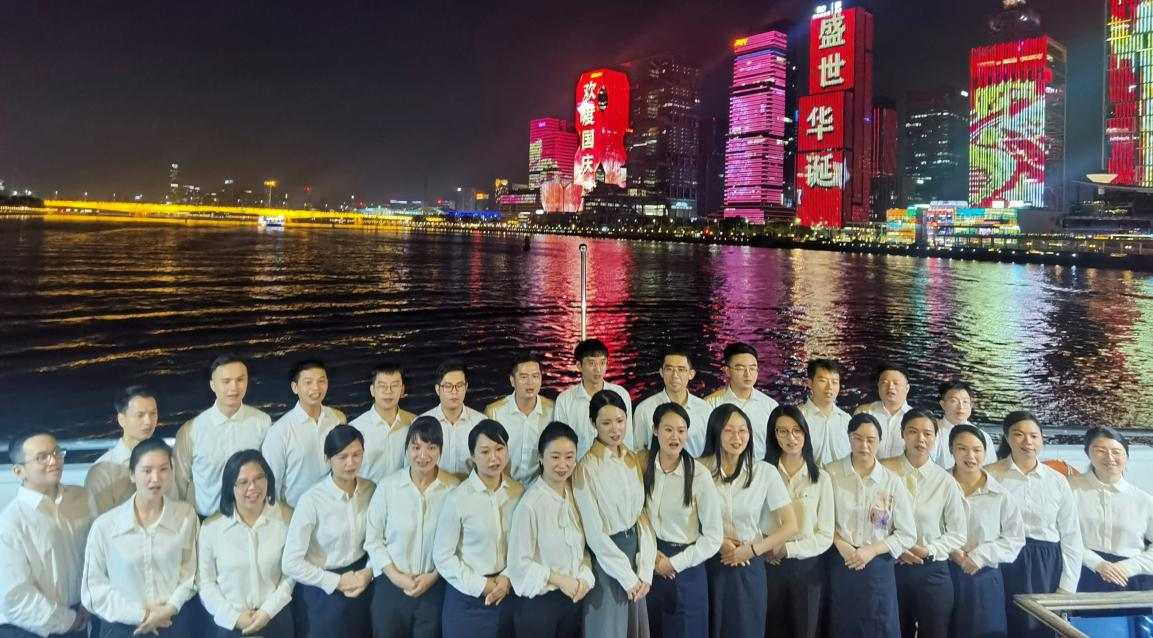 万联证券,组织员工合唱爱国主义歌曲《我的祖国》,感悟歌曲中信仰的力量与经典的魅力。大家在珠江上齐声高歌,歌声伴随着珠江两岸璀璨的灯光荡漾,引来两岸不少游客驻足,自发参与合唱,这一幕更与羊城两岸的繁华景象交相辉映,构成一幅扣人心弦的爱国画卷。