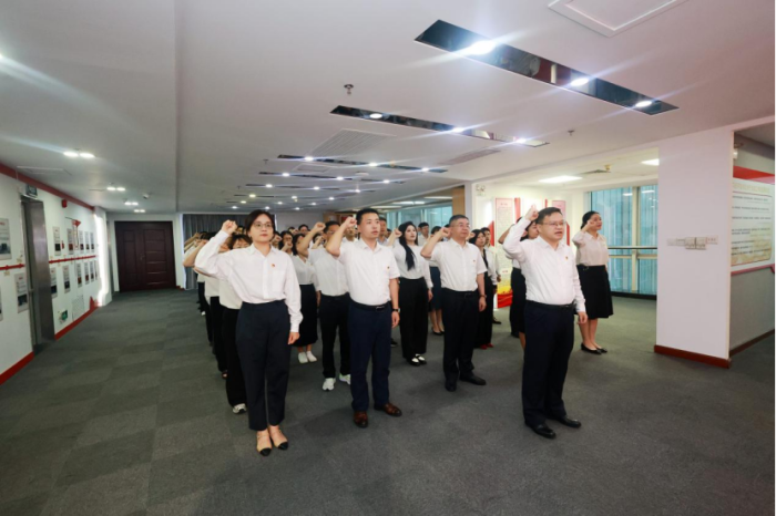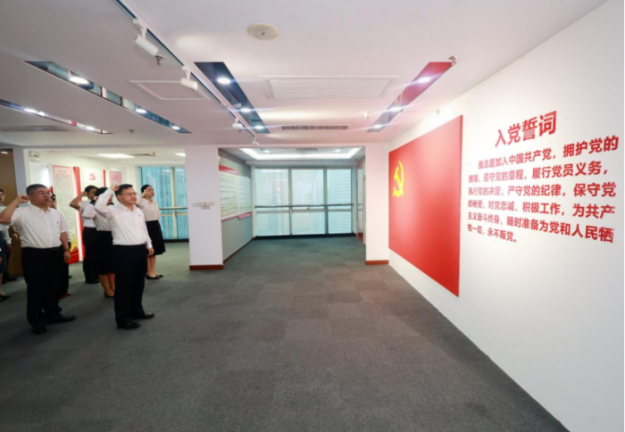 会前,在徐秀彬书记的带领下,参会的全体党员同志在广州金控集团党建基地重温了入党誓词,部分新党员进行入党宣誓。