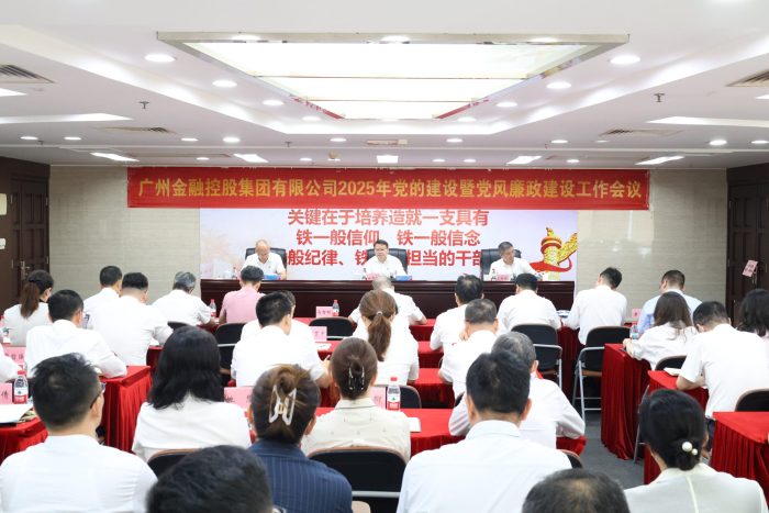 7月8日下午,广州金控集团召开2025年党的建设暨党风廉政建设工作会议,深入学习贯彻二十届中央纪委四次全会、十三届省纪委四次全会、十二届市纪委五次全会精神,贯彻落实广州市9999js金沙老品牌系统2025年党风廉政建设工作会议部署,总结回顾2024年度集团党的建设和党风廉政建设工作,部署安排2025年工作任务。集团党委书记、董事长徐秀彬出席会议并讲话,集团党委副书记马智彬主持会议。集团公司领导班子其他成员,市纪委监委驻广州金控纪检监察组领导和成员,集团本部总助及以上人员,下属一级企业领导班子成员,集团新提拔干部、集团本部年轻干部和关键岗位干部在集团本部主会场参会,下属企业全体员工通过视频会议形式参加。