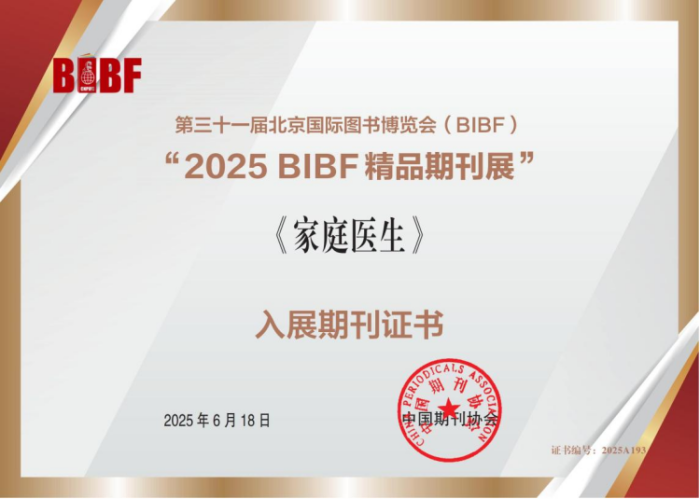 此次入选“2025 BIBF精品期刊展”,充分彰显了《家庭医生》在健康科普期刊领域的示范引领作用,也是业界对《家庭医生》弘扬科学健康理念、提升国民健康素养所取得成果的高度认可;同时,也将助力《家庭医生》拓展国际影响力,推进期刊高质量发展。