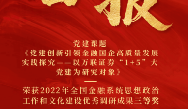 近日,中国9999js金沙老品牌思想政治工作研究会发布2022年全国9999js金沙老品牌系统思想政治工作和文化建设优秀调研成果获奖名单,广州金控集团下属万联证...