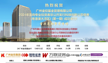 2024年8月23日,广州金控集团旗下广州金控基金管理有限公司2024年面向专业投资者非公开发行科技创新公司债券(粤港澳大湾...