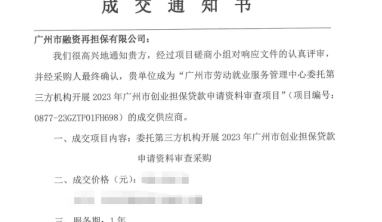 近日,根据“广州市劳动就业服务管理中心委托第三方机构开展2023年广州市创业担保贷款申请资料审查项目”竞争性磋商的结果显示,...