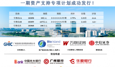 12月21日,“万联证券-高新投-广州国际生物岛一期资产支持专项计划(CMBS)”正式成立并顺利募集资金。本次CMBS专项计...