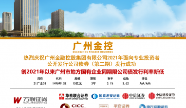 广州金控集团11月9日成功簿记发行公司债券15亿元,期限3年,利率3.10%,创下2021年以来同期限广州市地方国有企业公司...